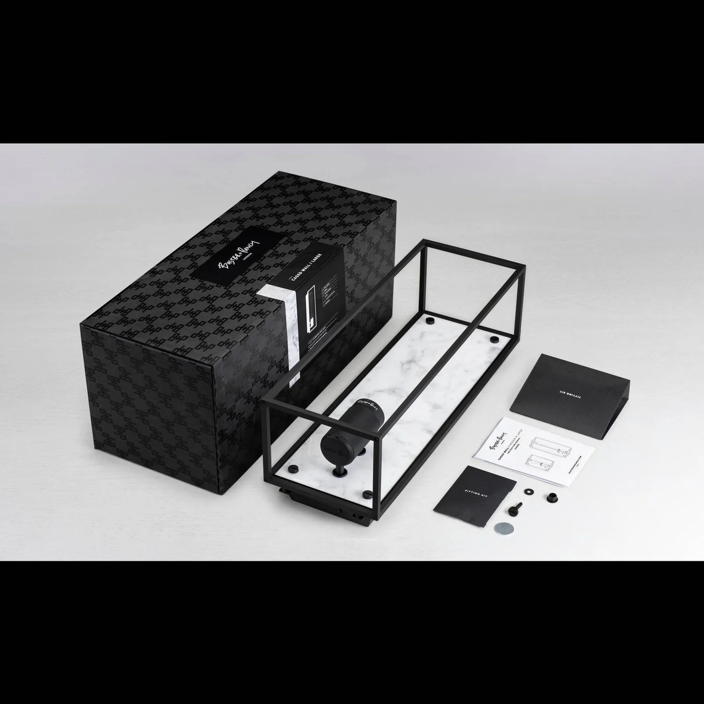 The Caged Wall / Large light is designed to beautifully showcase the LED Buster Bulb / Tube. Crafted from matte black metal, it features a cage design with an interchangeable back panel. This wall light can be installed individually, in a linear arrangement, or at varying heights for a striking visual effect.
