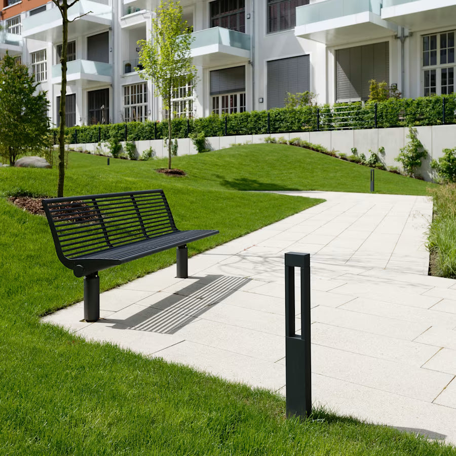 Garden and pathway luminaires designed for private gardens, house entrances, and various applications along paths and terraces. Their directed light produces an impressive illumination pattern on both sides of the fixture, which varies with the surrounding brightness.